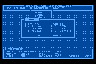 Umożliwia konfigurację ustawień PokeyMAX, flashowanie rdzenia, weryfikację rdzenia i przywracanie ustawień domyślnych.